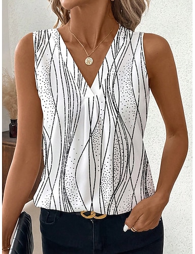 Damen Tank Top Grafik Geometrisch Abstrakt Elegant Vintage Stilvoll Ärmellos V Ausschnitt Normale Oberteile Täglich Weiß Grün Sommer Frühling