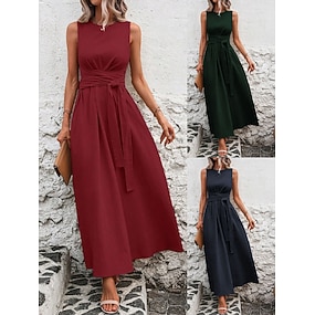 Damen Maxikleid A Linie Kleid Urlaub Lässig Outdoor Ausgehen Standard Passform Einfarbig Ärmellos Rundhalsausschnitt Marineblau Schwarz Rote Grün Sommer Frühling