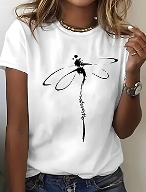 Damen T-Shirt Casual Print Kurzarm Normal Oberteile Alltag Schwarz Sommer