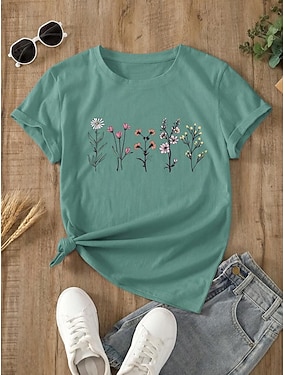 Damen T Shirt Druck Blumen Grafik Stilvoll Klassisch Lässig Kurzarm Rundhalsausschnitt Rundhals Normale Oberteile Täglich Blau Schwarz Weiß Rosa Grün Sommer Frühling