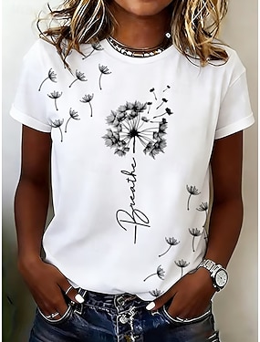 Damen T Shirt Druck Blumen Grafik Pflanzen Stilvoll Klassisch Lässig Kurzarm Rundhalsausschnitt Rundhals Normale Oberteile Täglich Weiß / blau Schwarz Weiß Sommer Frühling