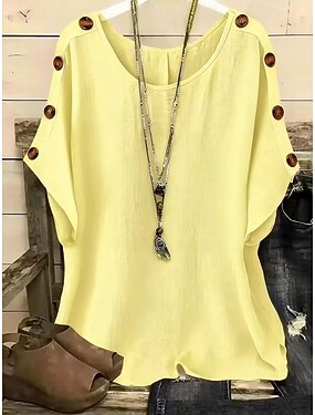 Damen T Shirt T-Shirt Knöpfe Einfach Mode Stilvoll Klassisch Kurzarm Rundhalsausschnitt Normale Oberteile Täglich Ausgehen Wochenende Blau Weiß Gelb Rosa Orange Sommer Frühling