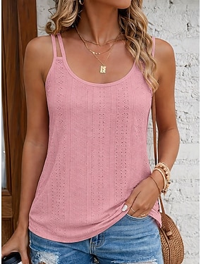 Damen T Shirt T-Shirt Lochmuster Einfach Mode Stilvoll Klassisch Ärmellos Rundhalsausschnitt Rundhals Normale Oberteile Täglich Ausgehen Wochenende Weiß Gelb Rosa Wein Fuchsie Sommer Frühling