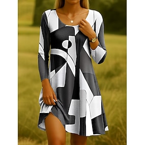 Frauen Mini Kleid Rundhalsausschnitt Lange Ärmel Lässiges Kleid T-Shirt Kleid Tee Kleid A-Linien Kleid Lässig Reguläre Passform Grafik Geometrisch Abstrakt Blau Lila Grün Grau Herbst Winter