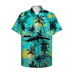 Herren Palme Tropische Pflanzen Hawaiihemd Sommerhemd Aloha-Shirt Kurzarm Hemd Umlegekragen Designer Urlaub Strand Rote Blau Grün S M L