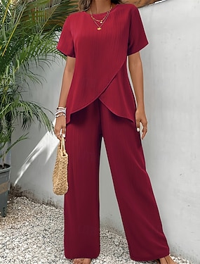 Damen Hosen-Sets Dreiviertelarm Rundhalsausschnitt Einfarbig Elegant Mode Streetwear Lässig Täglich Schwarz Weiß Wein Sommer Normale Passform