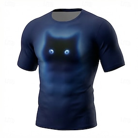 Herren Katze Optische Täuschung 3D T Shirt Kurzarm T-Shirt 3D-Druck Rundhalsausschnitt Hemd Übertrieben Designer Täglich Club Party Blau Sommer Frühling Ganzjahres Bekleidung S M L XL XXL XXXL