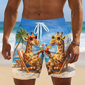 Herren Giraffe Lustig Comic-Tiere Badehosen Badeshorts Boardshorts Mittlere Taille Hawaiianisch Strandurlaub Seitentaschen Netzfutter Elastischer Kordelzug in der Taille Designer Bekleidung