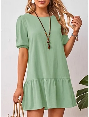 Damen Minikleid Kunstbaumwollleinen Shiftkleid Freizeitkleid Mode Basic Modern Täglich Outdoor Urlaub Normale Passform Einfach Kurzarm Rundhalsausschnitt Schwarz Gelb Hellgrün Armeegrün Sommer