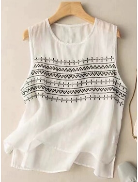Damen Hemd Baumwoll-Leinen-Hemden Bluse Kunstbaumwollleinen Druck Geometrisch Basic Lässig Ärmellos Rundhalsausschnitt Normale Oberteile Täglich Weiß Khaki Grau Sommer