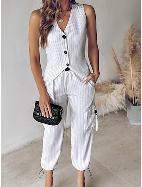 Damen Zweiteilige Sets Weste Hosen-Sets Ärmellos V Ausschnitt Gestreift Mode Streetwear Lässig Täglich Outdoor Schwarz Weiß Grün Sommer Normale Passform