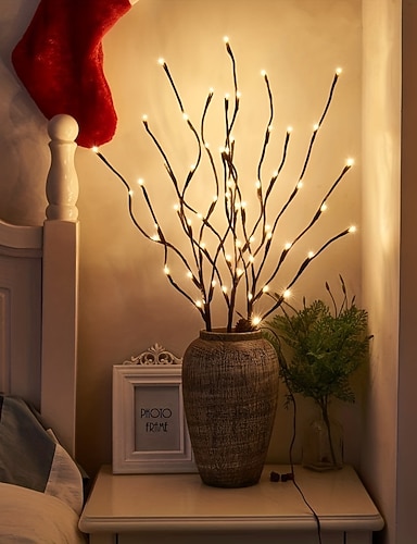 Warmweiße LED-Zweigleuchte, batteriebetrieben, beleuchtete Zweige, Vasenfüller, Weidenzweig, beleuchteter Zweig, 76,2 cm, 20 LEDs, für Weihnachten, Zuhause, Party, Dekoration, Innen- und Außenbereich