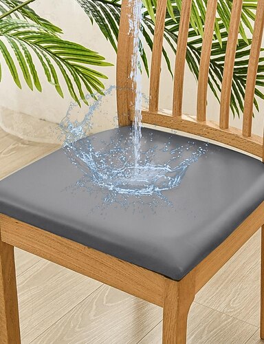 Stretch-Küchenstuhlbezug weiß schwarz grau Stuhlsitzbezug Stuhlhussen PU-Leder elastisch für Dining Party Hotel Hochzeit weich waschbar