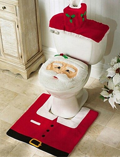 Weihnachts-Toilettensitzbezug, Dekorationen, Weihnachtsmann, Schneemann, Hirschgeist, Toilettensitzbezug, Teppich, Badezimmerset mit Papierhandtuchbezug für Weihnachtsgeschenk, Premium-Jahres-Heimdekorationen
