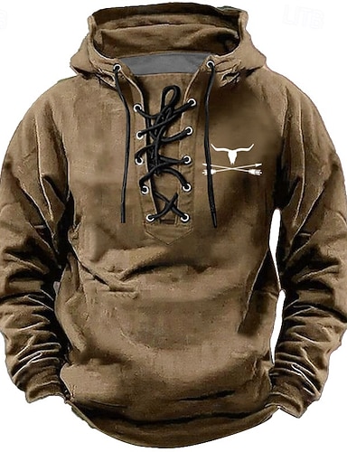 Herren Cowboy Kapuzensweatshirt Pullover Stilvoll Ethnisch Vintage-Retro Langarm Mit Kapuze Streetwear Blau Schwarz Braun Armeegrün Kordelzug Herbst Winter Designer S M L XL XXL XXXL