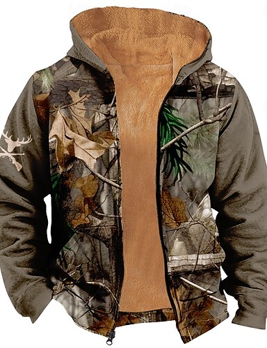 Herren Tarnung Fleece Kapuzensweatshirt Jacke Pullover Klassisch Militär Jagd Langarm Rundhalsausschnitt Outdoor Camping Schwarz Khaki Armeegrün Reißverschluss Herbst Winter Designer S M L XL 2XL 3XL