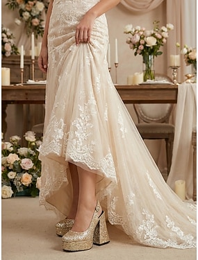 Silberne Plateau-Pumps für Damen – elegante Brautschuhe für Hochzeiten in der Stadt