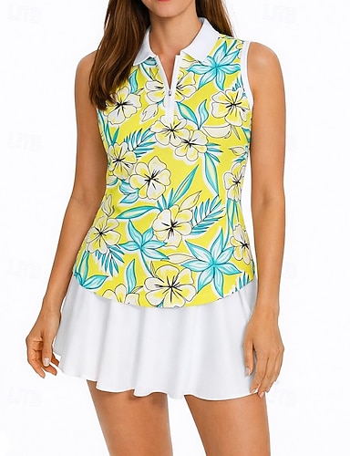 Damen Blumenmuster Sporthemd Golf-Poloshirt Tennis Shirt Ärmellos Reißverschluss Blumen UPF50+ UV-beständig Hohe Elastizität Feuchtigkeitsableitend Atmungsaktiv Tennis Golfspiel Pickleball