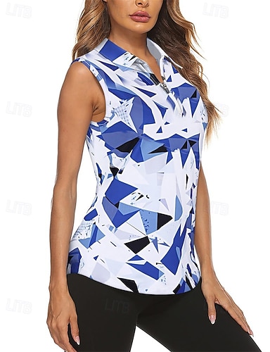 Damen Grafik Geometrisch Sporthemd Golf-Poloshirt Tennis Shirt Ärmellos Reißverschluss Hohe Elastizität Feuchtigkeitsableitend Atmungsaktiv Tennis Golfspiel Pickleball Umlegekragen