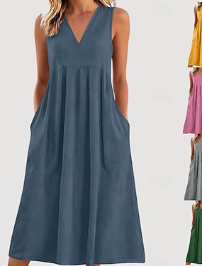Damen Maxikleid A Linie Kleid Faltenkleid Urlaub Party Lässig Täglich Heim Outdoor Normale Passform Einfarbig Ärmellos V Ausschnitt Gelb Rosa Marineblau Dunkelgrün Sommer Frühling Herbst Winter