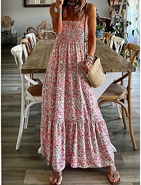 Damen Maxikleid Sommerkleid Strandkleid Freizeitkleid Blumenkleid Elegant Mode Modern Outdoor Urlaub Ausgehen Normale Passform Blumen Ärmellos Träger Rosa Sommer Frühling