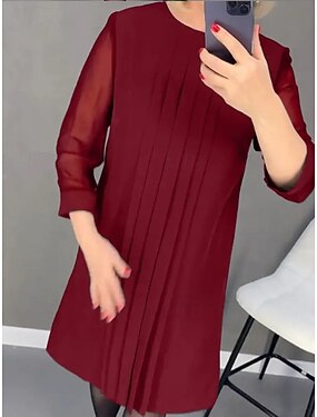 Damen Minikleid A Linie Kleid Lässig Täglich Normale Passform Einfach Langarm V Ausschnitt Schwarz Wein Frühling Herbst