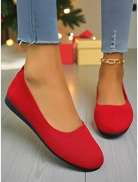 Rote Flyknit-Slipper für Damen – bequem und stylisch, perfekt für Weihnachtsfeiern, Freizeit und Weihnachtseinkäufe