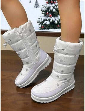 Weiße Damen-Schneestiefel – wasserdichte, warme Winterstiefel mit Schneeflockenmuster und rutschfester Sohle für Outdoor-Aktivitäten im Schnee und Urlaubsreisen