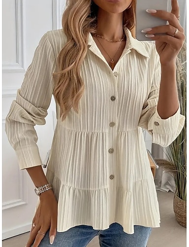 Damen Hemd Textur Bluse Leinen-inspirierte Hemden Bluse Knöpfe Einfach Modern Lässig Langarm Hemdkragen Normale Oberteile Täglich Ferien Ausgehen Schwarz Weiß Gelb Rosa Wein Herbst