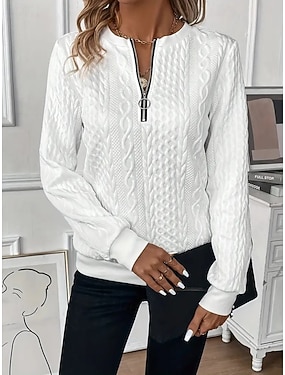 Damen Hemd Bluse Reißverschluss Einfarbig Stilvoll Lässig Langarm Rundhalsausschnitt Normale Oberteile Täglich Schwarz Weiß Rosa Grau Frühling Herbst Winter