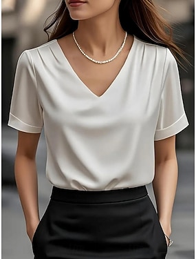 Damen Bluse Einfarbig Elegant Stilvoll Basic Kurzarm V Ausschnitt Normale Oberteile Täglich Schwarz Weiß Wein Fuchsie Grün Sommer Frühling