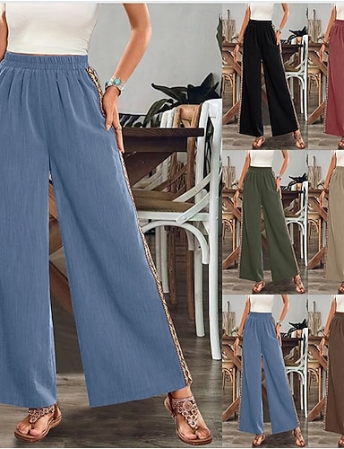 Damen Weites Bein Chinos Gerade Elegant Urlaub Vintage Volle Länge Hohe Taille Einfach Patchwork Tasche Elastischer Bund Bequem Mikroelastisch Täglich Heim Outdoor Blau Beige Dunkelblau Schwarz