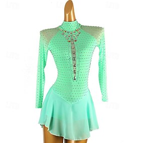 Eiskunstlaufkleid Damen Mädchen Eislaufen Kleider Grün Patchwork Rückenfrei Gitter Spandex Hochelastisch Ausbildung Praxis Professionell Eiskunstlaufkleidung Klassisch Kristalle Langarm Eislaufen