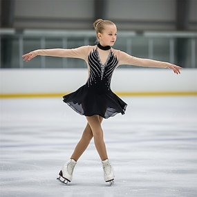 Eiskunstlaufkleid Damen Mädchen Eislaufen Kleider Schwarz Patchwork Rückenfrei Gitter Spandex elastisch Ausbildung Praxis Professionell Eiskunstlaufkleidung warm Kristalle Ärmellos Eislaufen