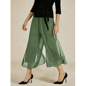 Damen Weites Bein Chinos Elegant Wadenlang Mittlere Taillenlinie Dehnbar Schiefergrün Sommer Frühling Herbst