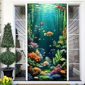 Türbanner mit Unterwasserwelt-Aquarium-Motiv, bunte Meeresfische, Korallenriff-Wanddekoration, Veranda-Dekoration