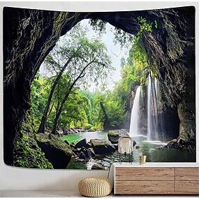 Naturlandschaft Wasserfall Höhle Wandteppich tropischer Wald Grotte Szenerie Kunst für Wohnzimmer Schlafzimmer Heimdekoration