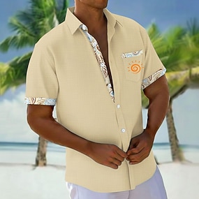 Herren Paisley-Muster Blumendruck Sonnentotem Hemd Hawaiihemden Alohahemd Kurzarm Hawaiianisch Urlaub Ferien Sommer Umlegekragen 3D-Druck Eine Tasche vorne Leinenähnliches Hemd Blau Weiß Rosa Khaki