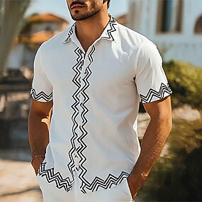 Herren Geometrisch Linie Hemd Freizeithemd Knopfhemd Kurzarm Modisch lässig Outdoor Urlaub Streetwear Sommer Frühling Umlegekragen 3D-Druck Hemden mit Kragen Weiß
