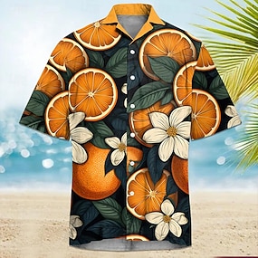 Herren Orange Hawaiihemd Sommerhemd Aloha-Shirt Kurze Ärmel Hemd Umlegekragen Hawaiianisch Resort Outdoor Urlaub Strasse Grün S M L