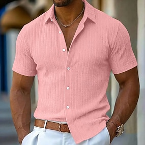 Herren Hemd Freizeithemd Knopfhemd Einfach Urlaub Straße Schwarz Weiß Rosa Wein Kurzarm Revers Sommer Bekleidung Button-Down