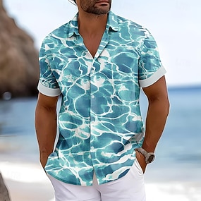 Herren Meerwasser Hawaiihemd Sommerhemd Aloha-Shirt Kurzarm Hawaiianisch Strand Design Urlaub Strand Sommer Frühling Umlegekragen Knopf hoch Blau 2# Blau 1# Blau