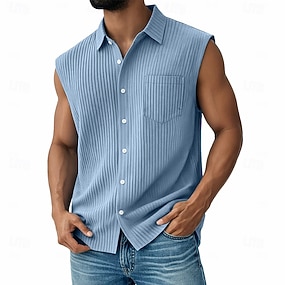 Herren Hemd Freizeithemd Cordhemd Knopfhemd Blau Schwarz Weiß Rote Marineblau Ärmellos Einfach Texture Hemdkragen Lässig Täglich Fronttasche Bekleidung Elegant Mode Lässig