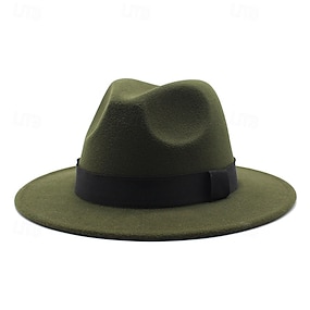 Herren Kentucky Derby Hut Fedora-Hut Hut mit Krempe Schwarz Wein Wollig Fedoras Veranstaltungen Festival Einfach UV-Sonnenschutz Sonnenschutz