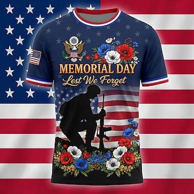 Gedenktag „Erinnerung“ &„Ehre“-Herren-T-Shirt mit patriotischem Motiv eines knienden Soldaten, Allover-Print, Rundhalsausschnitt, Kurzarm, Geschenkidee für Veteranen, marineblau, Designer-Kleidung