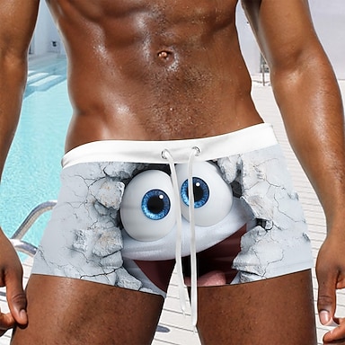 Herren Cartoon Große Augen Zierreißverschluss Dehnbare Boxershorts Badeshorts Boxer-Badeshorts Lustig Lässig Heim Strandurlaub Elastischer Bund Feuchtigkeitsableitend Atmungsaktive Unterwäsche