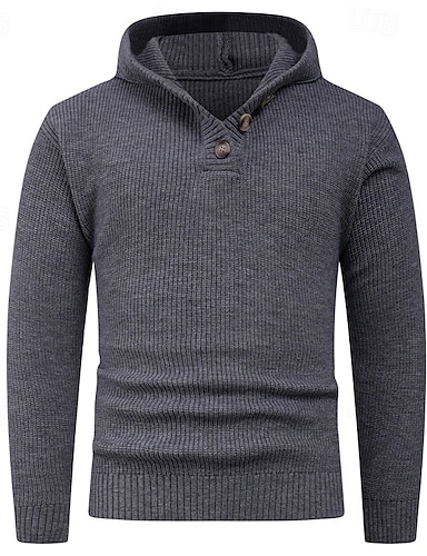 Herren Pullover Strickpullover Gerippt Stricken Normale Oberteile Knöpfe Gestrickt Einfach Mit Kapuze Mode Basic Urlaub Alltagskleidung Bekleidung Herbst Winter Schwarz Hellgrau S M L