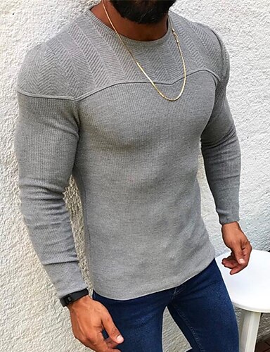 Herren Pullover Strickpullover Gerippt Stricken Normale Oberteile Gestrickt Einfach Rundhalsausschnitt Mode Basic Urlaub Alltagskleidung Bekleidung Herbst Winter Schwarz Grau S M L