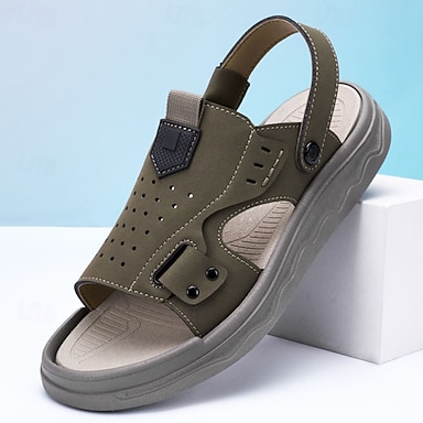Olivgrüne Herren-Ledersandalen mit verstellbarem Riemen, rutschfeste und bequeme Outdoor-Schuhe für Strand, Wandern und Freizeit im Sommer