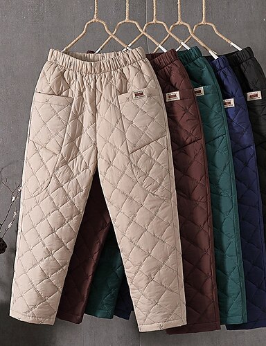 Damen Hosen Hose Elegant Mode Lässig Volle Länge Tiefer Bund Einfach Tasche Elastischer Bund Thermowarm Bequem Verdicken Mikroelastisch Täglich Outdoor Straße Hautfarbe Braun Herbst Winter Lässiger